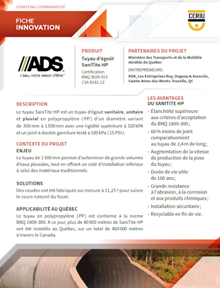 Le tuyau SaniTite HP est un tuyau d’égout sanitaire, unitaire