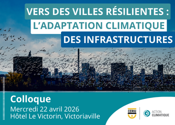 L'adaptation des infrastructures municipales aux changements climatiques est déjà une réalité. Cette journée organisée par le CERIU est l'occasion d'ouvrir le dialogue, partager les bons coups et constituer une communauté solide parmi les acteurs municipaux engagés pour des milieux de vie durables et résilients.